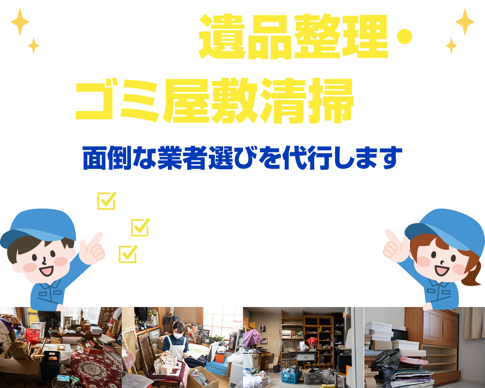 遺品整理、ゴミ屋敷清掃、生前整理、特殊清掃、空き家片付けなど幅広くご相談いただけます。